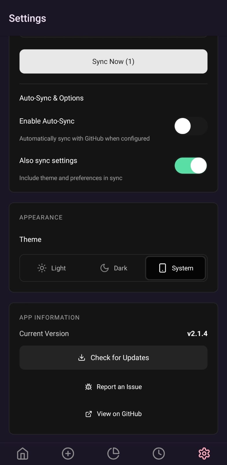 I designed GitHub sync to be safe, predictable, and fully optional. Your data stays local unless you explicitly turn this on.